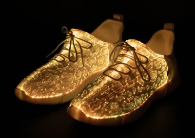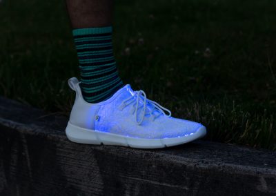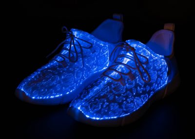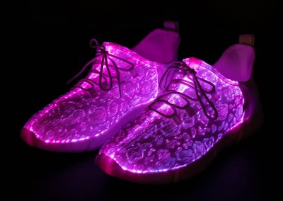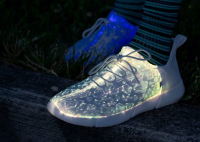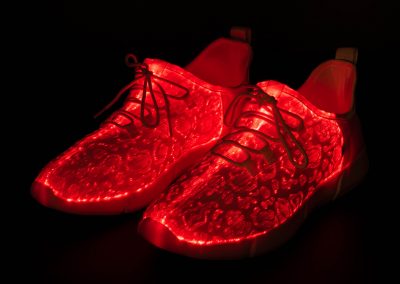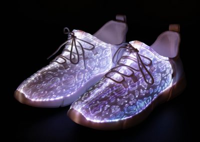 Radiate with our signature footwear merch. Our primary product, these shoes put a fresh spin on light up shoes in classic all-white and the perfect amount of flash to make you shine. Fitted with many colors and strobe effects.